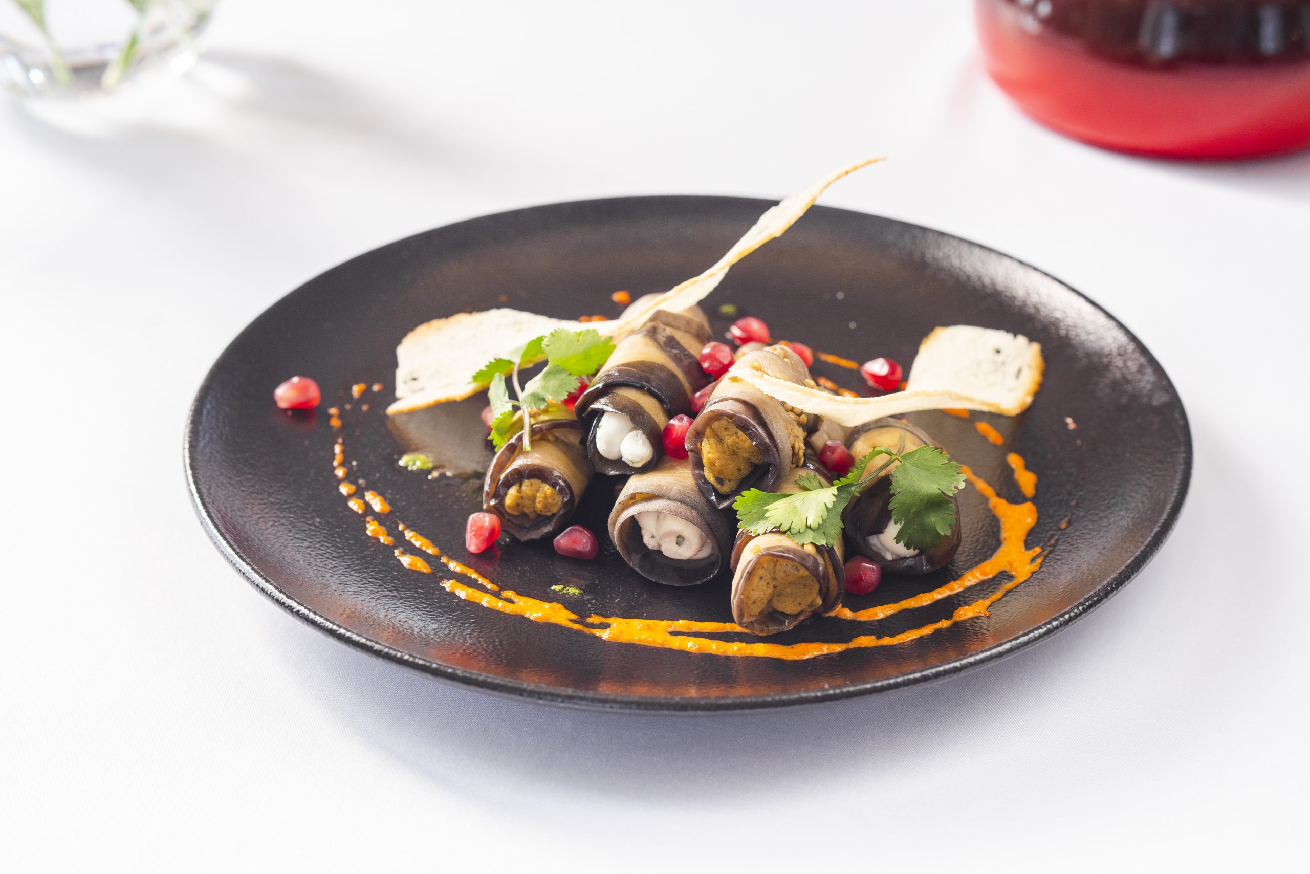 Рулетики из баклажанов с сыром креметте и ореховой пастой